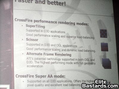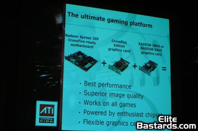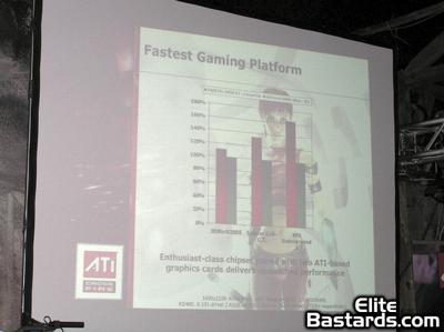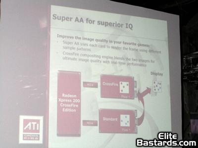 Forum member Mendel was on-hand to view the presentation, and grabbed a few images of the presentation. It's nothing new information-wise, but may be of interest to any of you who want to see how ATI is promoting this new technology. What follows are the images captured of this presentation - Click on the thumbnails for full-sized versions of these images.