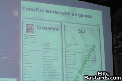 ATI claims that CrossFire has broader application support that NVIDIA's application profile-based SLI system. While this may be true, some of the titles listed in this slide are simply incorrect - The Chronicles of Riddick for example is a game that works perfectly well under SLI, while ATI claims here that it is unsupported