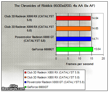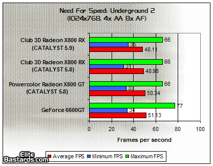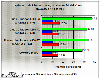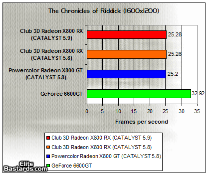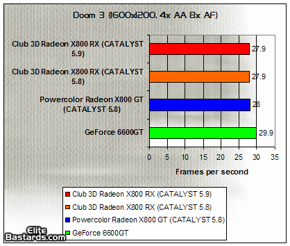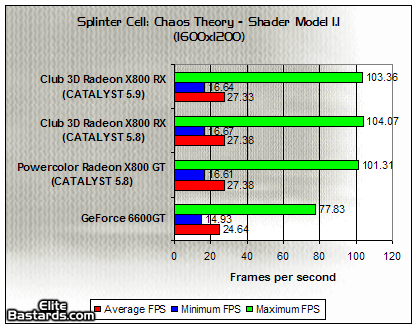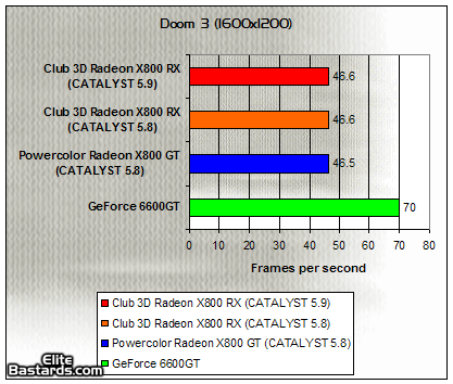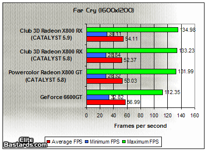 1600x1200 sees the X800 beat out the 6600GT, although only by a few frames per second.