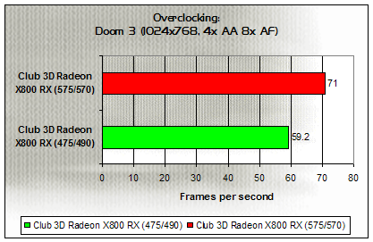 To see how these new clocks affected performance, we tested using both Half-Life 2 and, firstly, Doom 3 at 1024x768 with 4x anti-aliasing and anisotropic filtering.