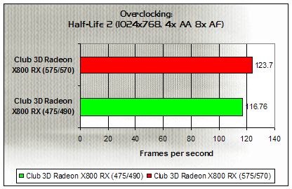 Half-Life 2 shows smaller gains, but still gives us an extra seven frames per second.