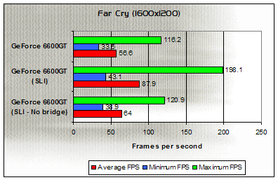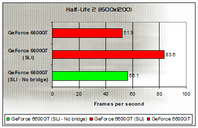 The answer is most likely no - With the news that the previously non-SLI supporting 6600 can now work in an SLI configuration, it seems likely that without the bridge connector fitted, the two devices are relying on a software-based form of SLI to deal with the organisation of transferring data to, from and between devices. Such a system will, naturally, put more strain on the CPU then the usual hardware-based system, and again may have a part to play in the performance degredation seen when no bridge connector is used. This also fits in with some of the patterns seen during our testing, where more naturally GPU-limited situations such as 3DMark's tests or Far Cry with anti-aliasing and anisotropic filtering enabled exhibit more advantage over a single board than 'straight' rendering setups such as 1600x1200 without AA and AF. Again, it seems unlikely that this is the entire story as to performance in such a configuration, but it may well play its part.